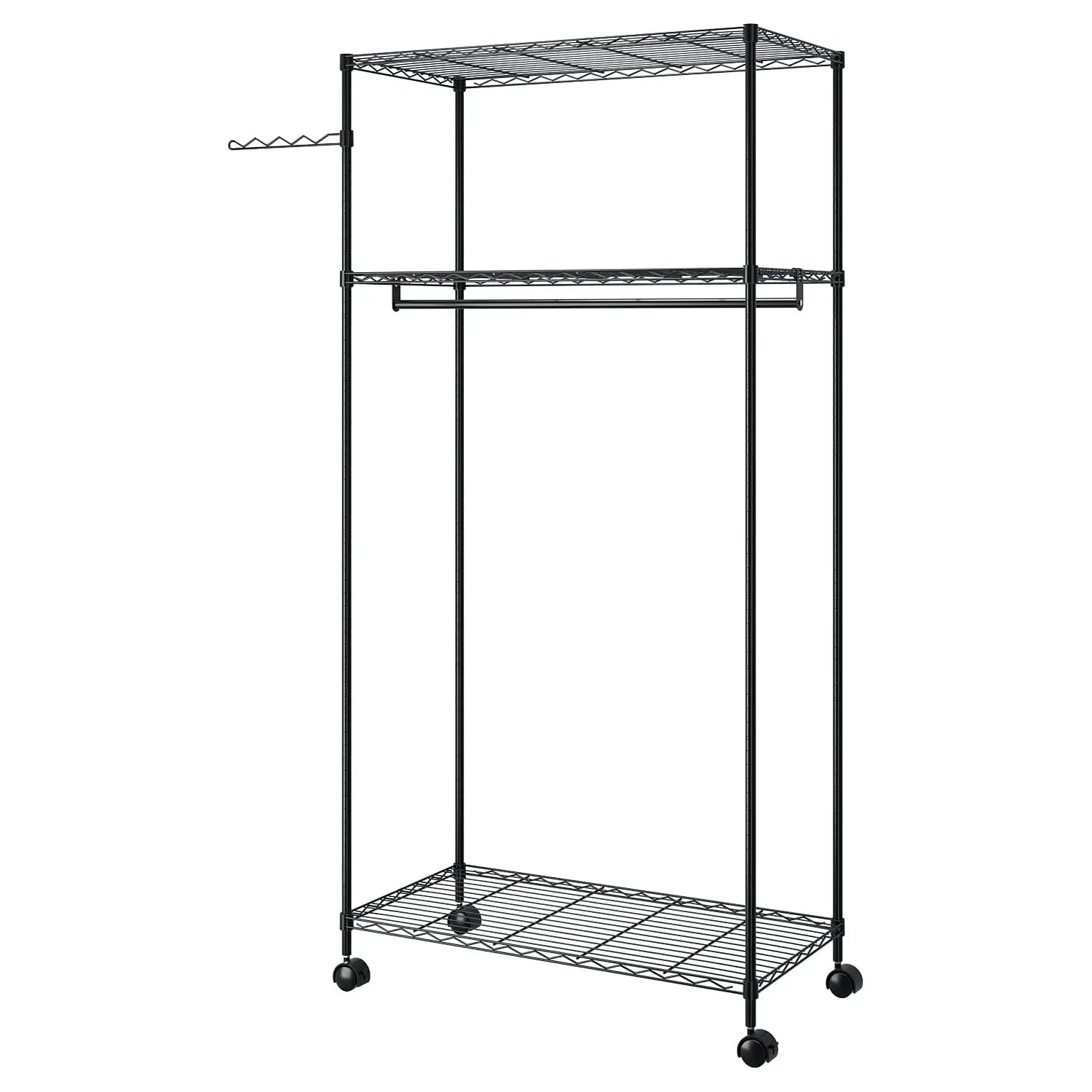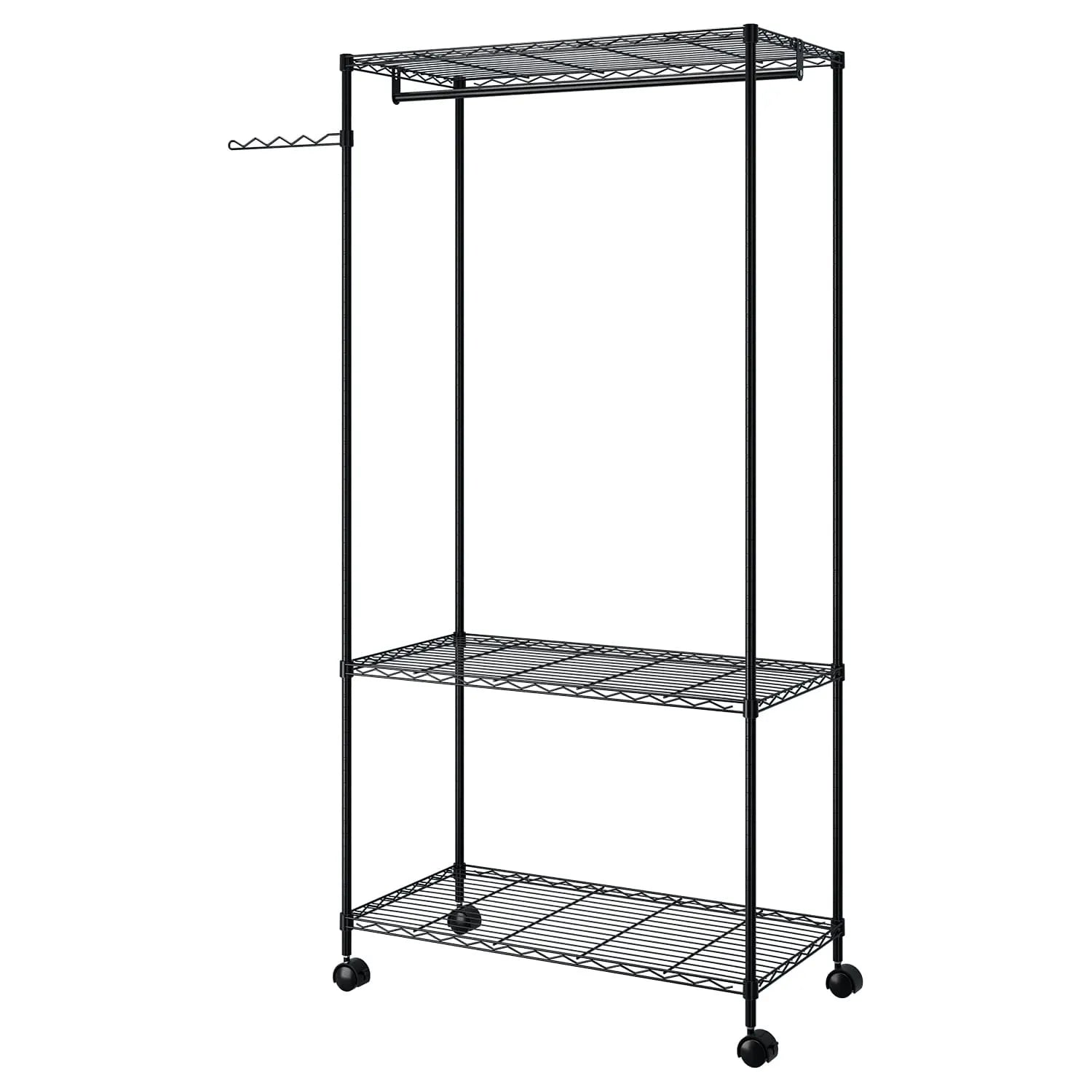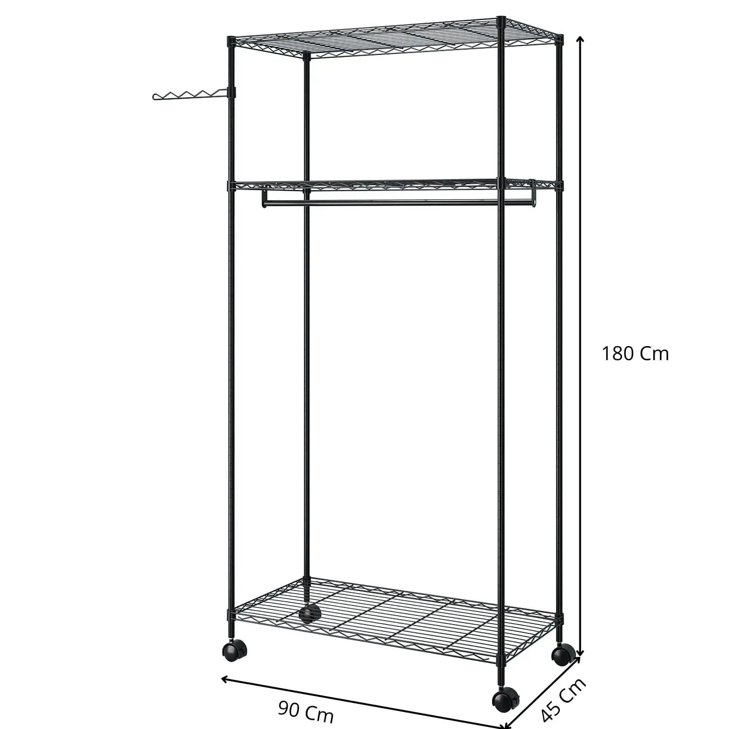 - Tipo: Rack metálico negro para ropa de 3 niveles con colgador