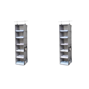Este pack contiene 2 organizadores colgantes grande de 6 estantes. Es una solución práctica para maximizar el espacio en armarios o habitaciones. Con sus tres amplios compartimentos, permite almacenar ropa, accesorios o artículos personales de manera ordenada y accesible. Fácil de colgar y hecho con materiales resistentes, es ideal para mantener todo en su lugar sin ocupar espacio adicional en el suelo.