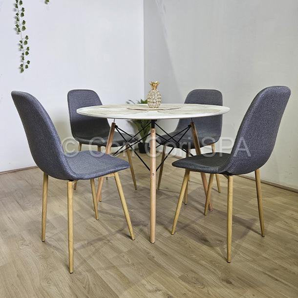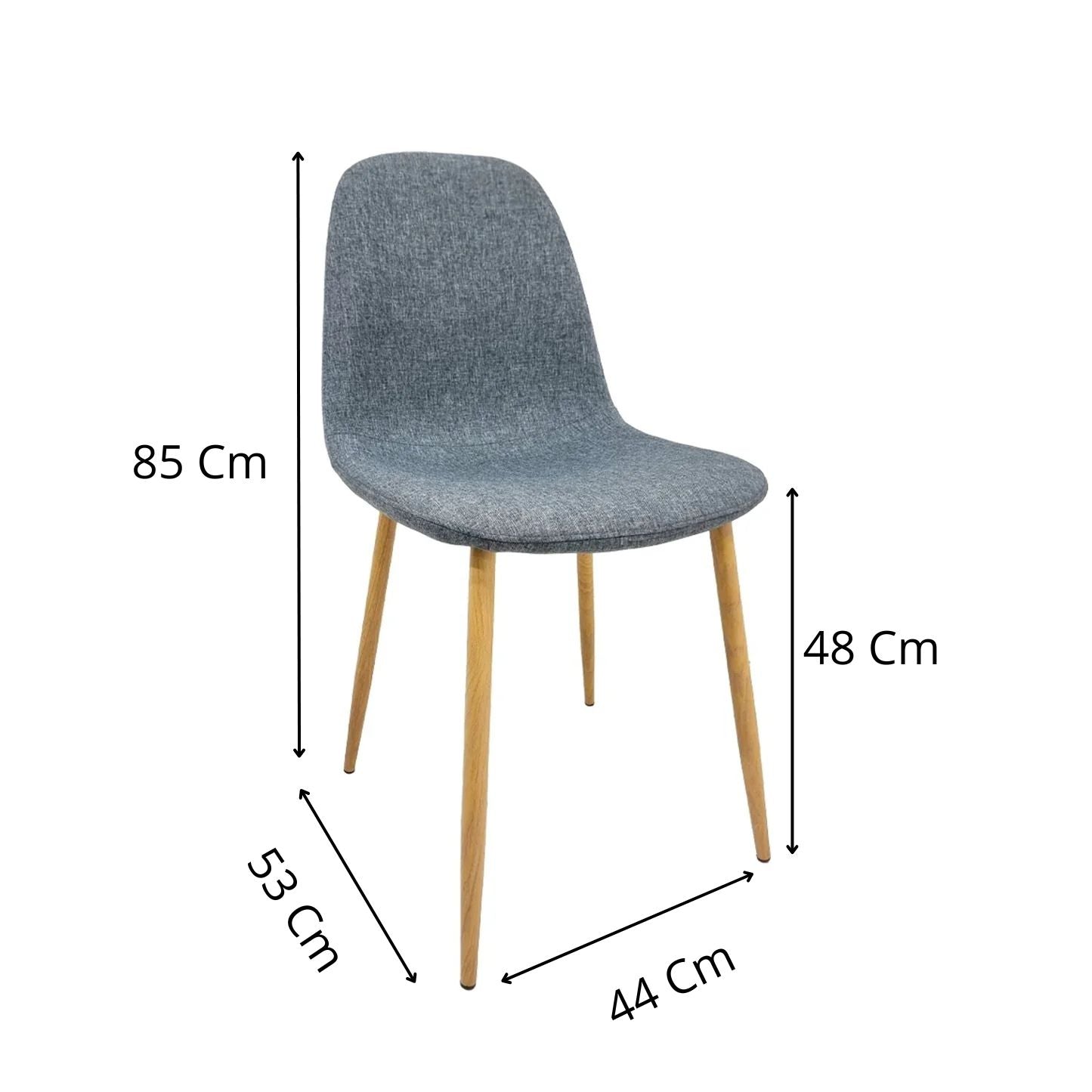 - Tipo: Silla de comedor tapizada con patas de madera