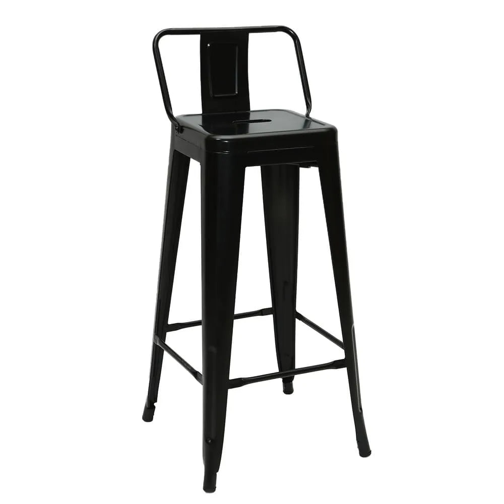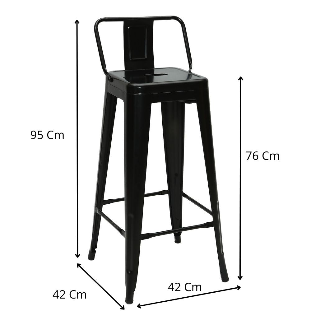Taburete Tolix metálico negro con respaldo, fabricado en acero pintado de alta resistencia. Su diseño industrial minimalista y funcional lo convierte en una pieza versátil y decorativa. Ideal para barras, cocinas y espacios modernos. Compacto y duradero. Medidas 42×42×95 cm, peso 4,8 kg.