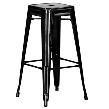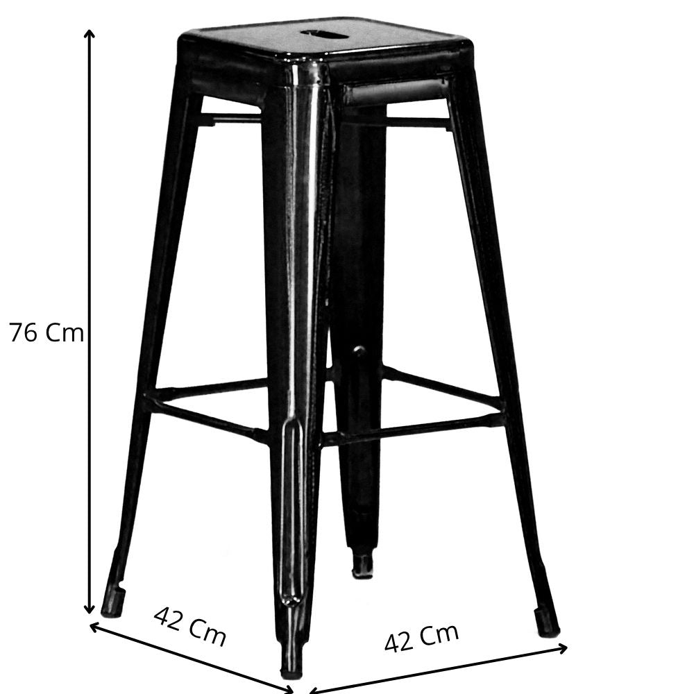Taburete Tolix metálico sin respaldo, fabricado en acero pintado negro mate. Diseño clásico y funcional, apilable y resistente, ideal para barras, quinchos, restaurantes y espacios con estética industrial. Compacto y fácil de limpiar. Medidas 42×42×76 cm, peso 4,3 kg.