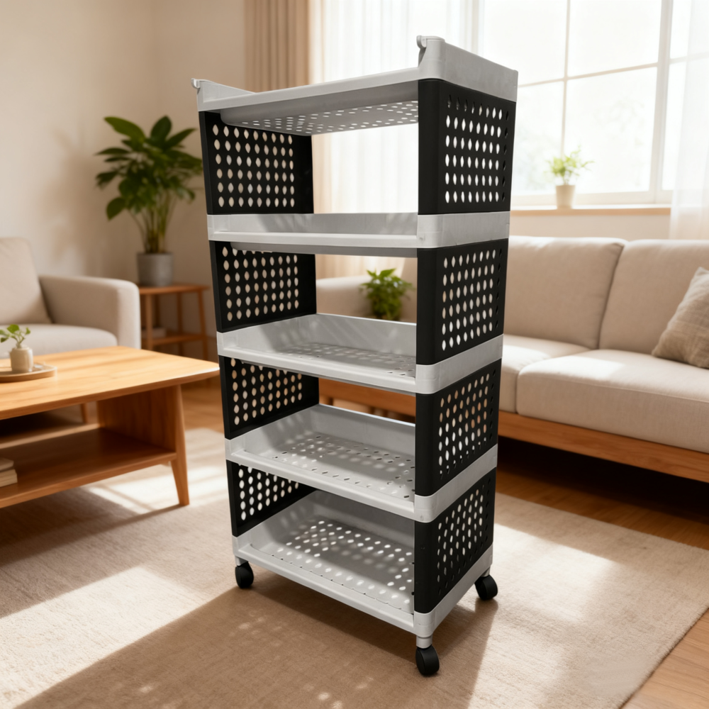 Organiza tu hogar u oficina con este carro de almacenamiento multiuso de 5 niveles, fabricado en polipropileno (PP) de alta resistencia. Su diseño vertical y compacto permite aprovechar espacios reducidos sin perder capacidad, ideal para baños, cocinas, lavanderías, escritorios o bodegas.