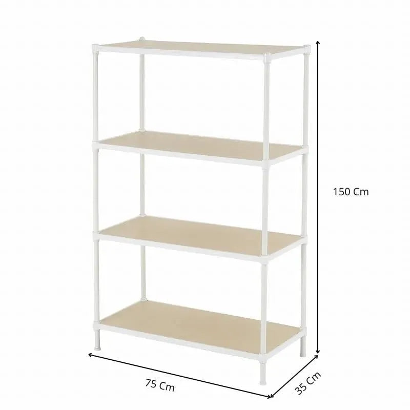 Cada nivel soporta hasta 70 kg, lo que permite una carga total de 280 kg. Las patas ajustables aseguran estabilidad en superficies irregulares. Medidas: 75 × 35 × 150 cm. Fácil de armar, versátil y visualmente armónica.