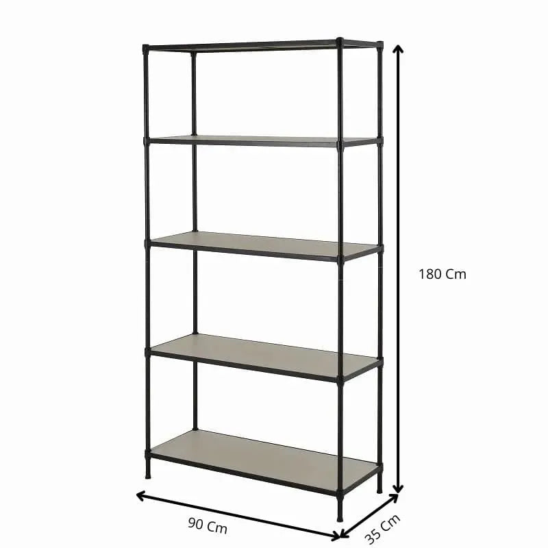 Cada nivel soporta hasta 70 kg, lo que permite una carga total de 350 kg. Las patas ajustables aseguran estabilidad en superficies irregulares. Medidas: 90 × 35 × 180 cm. Fácil de armar, versátil y visualmente armónica.