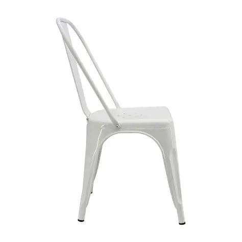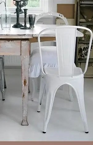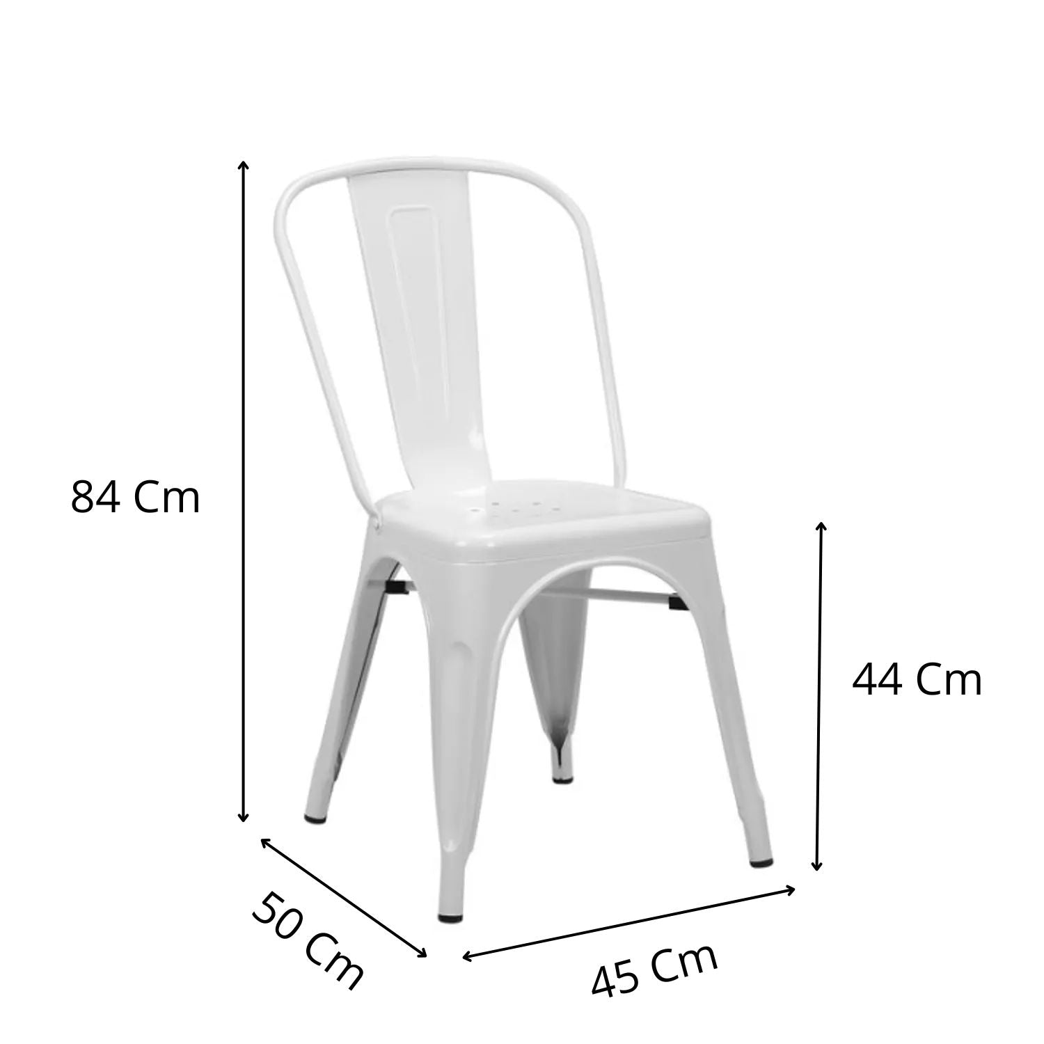 Silla Tolix blanca con apoyabrazos integrados, fabricada en acero pintado de alta resistencia. Su diseño ergonómico con respaldo alto y brazos curvos aporta comodidad y estilo. Perfecta para cafeterías, terrazas, cocinas o comedores decorativos con estética industrial o vintage. Medidas 45×50×84 cm.